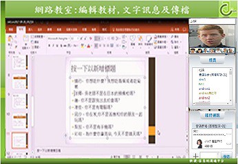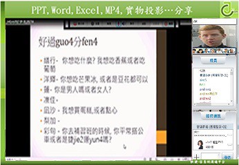 ,整合聲音、影像、多媒體、桌面分享, IM及外接輸入源如: 實物投影、內視鏡、顯微鏡 ...等。網路教室學生可達1000人, 教材, 老師, 7學生同時顯示在一個畫面僅需要一份頻寬及解壓縮一個畫面讓Ios, Android Pad 可以隨時隨地透過4G, Wifi輕鬆上課。