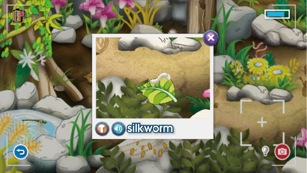 1.每一隻昆蟲或爬蟲類都配有單字動畫、中英文翻譯和音效,還可聲控唱名叫出動畫學習。