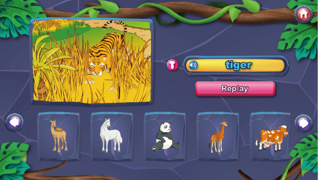 共可學習到十二種動物相關英文的闖關遊戲,同學要帶動物走迷宮送他們回家。在這個過程中可以訓練到學習者的英文、邏輯思考和手部動作穩定度。
