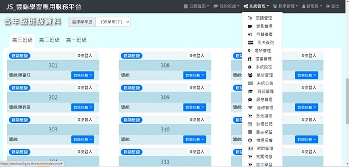 如線上線下教學系統模組、校園廣播系統模組、教學日誌及缺曠管理系統...等各式模組,