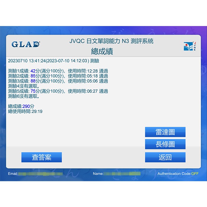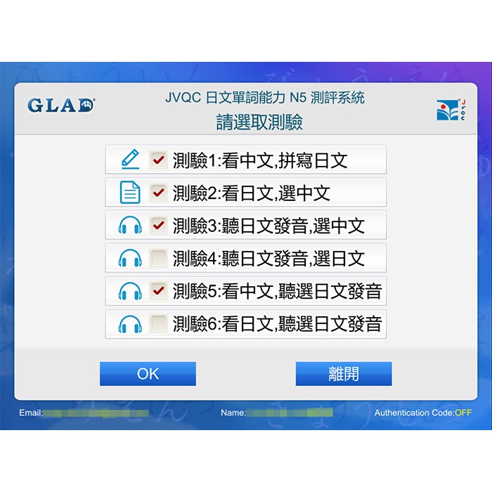 (2) 測驗題數:分為六種測驗,每種測驗100題,總題數600題