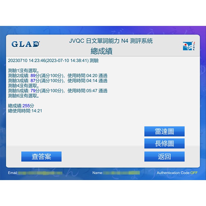(4) 正式檢定時間:測驗一 20分鐘,測驗二、三、五 各10分鐘,共70分鐘。