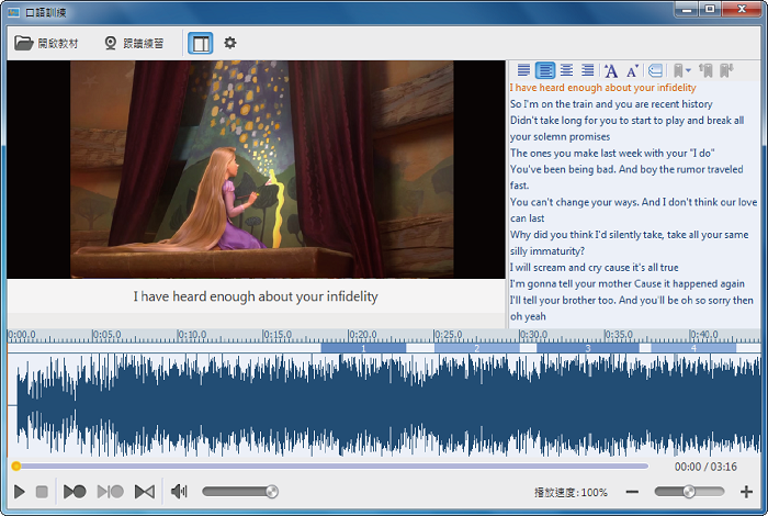(3) 口語訓練:教師在進行複讀訓練時,可設定複讀模式,並可在播放原音的同時,錄製學生跟讀聲音,以