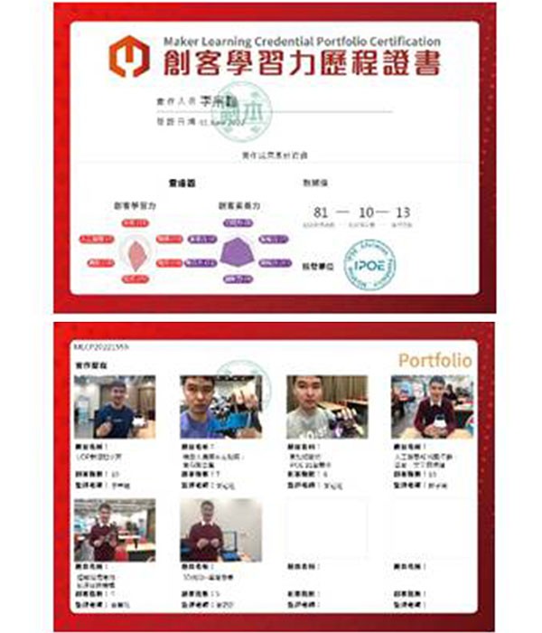 2.學生每次實作,經由創客師核可,可獲得單張證書,多次實作可累積成「歷程證書」。