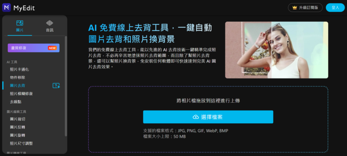 MyEdit將以往費時的照片編修和音訊修剪結合成一站式方案,可以AI自動生成的網頁工具,老舊照片模糊不清楚、雜訊噪點移除、物件智能去除都可以在網頁上一鍵操作,無須再花時間去熟悉其他軟體,在同一個網站上就能夠完成6.7個軟體所需繁瑣的工程。