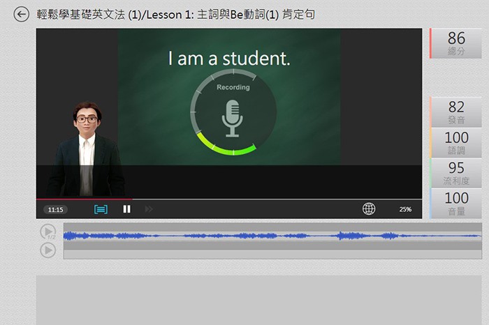 MyET 會針對學生的「發音」、「語調」、「流利度」及「音量」給出精確的分數,並告訴學生問題出在哪一個字、哪一個音節,然後再告訴學生如何做改進。