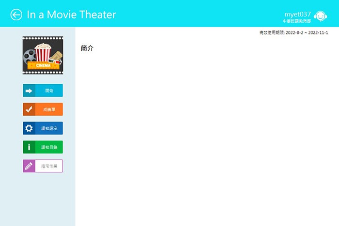 首頁數位內容 MyET – Mission based Learning 任務導向學習型英語課程 – In a Movie Theater