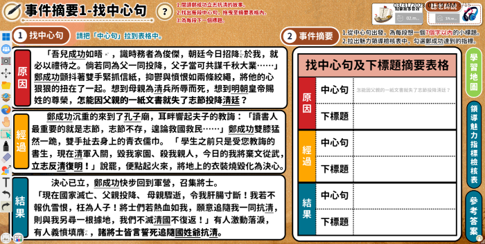 輔以myViewBoard科技輔助工具為載體,抽絲剝繭的析理出作文寫作結構。