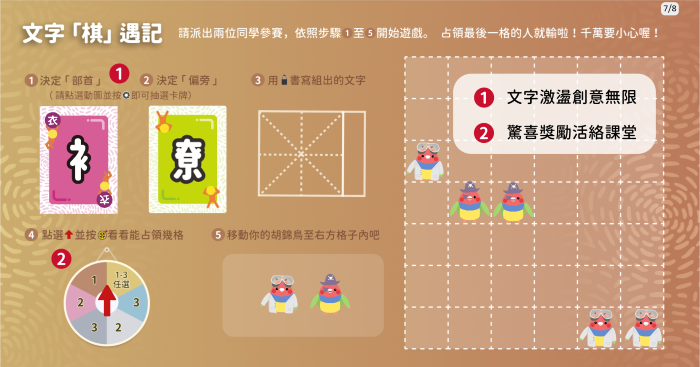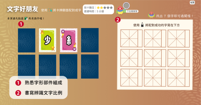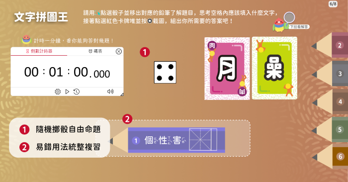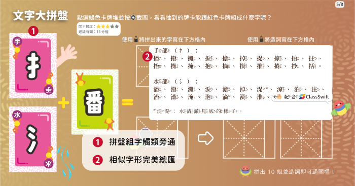 • 備課好夥伴:國字部首拆解的數位桌遊教材,不但可以省去老師大量備課時間,還能提高學生學習興致、激發創造力和團隊合作能力,沉浸式體驗「玩中學」。