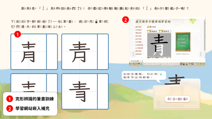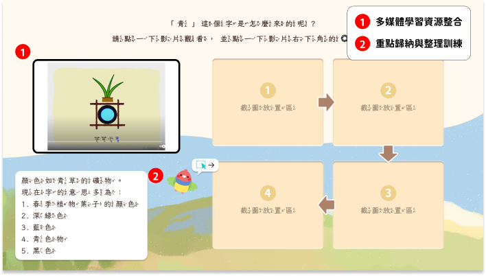 • 有聲素材的引導,幫助學生開啟多元感官的學習方式,對國字印象更深刻!
