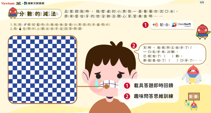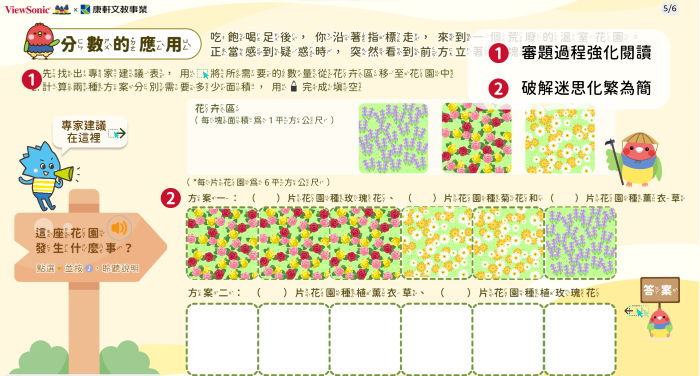 • 素養落實:將日常情境融入教材,強調數學概念的實際應用價值,讓學生在閱讀和討論的過程中增強認知能力。除了基礎知識之外,也著重於跨單元的統整,讓數學思維與學生生活經驗緊密結合,使學生能更有自信地應對未來的挑戰,落實真正的素養教學。