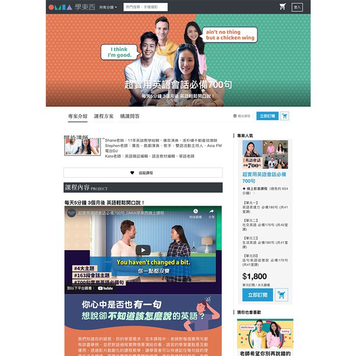 【課程內容】:目前站內共有五大領域,超過170堂課程數。包括由LiveABC集團講師群開設的語言學習類課程、從有聲書到數位攝影,從寫作邏輯思考到美學素養的通識素養課、各種手繪手作生活嗜好類,培養一技之長的課程等......內容多元,產品豐富。
