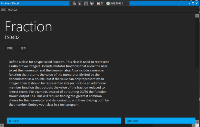 所有操作過程皆不須離開 IDE,能夠專注在程式撰寫上,且作答內不在受到傳統評分系統限制,可自由切分多個檔案(Class、Struct…)。