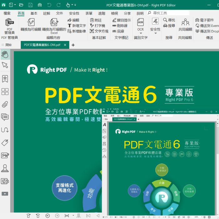 運用文電通獨樹一格的編輯功能,輕鬆全盤修改PDF的文字、字型、段落、頁面等內容。