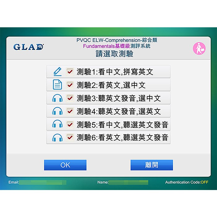 (2) 測驗題數:分為六種測驗,每種測驗100題,總題數600題