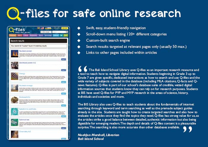 Q-files是全球第一個專為7-13歲(二至八年級)兒童所設計的英語線上大百科。9大主題緊扣課綱,內容皆由具權威的兒童專家撰寫、學者交叉審稿,兼具深度與廣度,知識含量高;上千張圖片、圖表,可輔助學習與理解;篇章中的關鍵字可進行延伸學習,也可透過關鍵字查詢、主題搜尋査找資料,適合作為教學資源、英文閱讀課的素材、專題研究的參考資料。網頁內容已超過2,000頁,每週更新,持續擴充中。