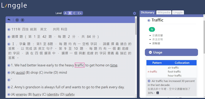 另外,運用了裝置的內建功能,R Linggle 也能提供朗讀、掃描輸入、機器翻譯的功能,大大提供了便利性和學習效率。
