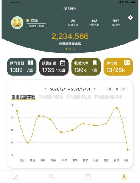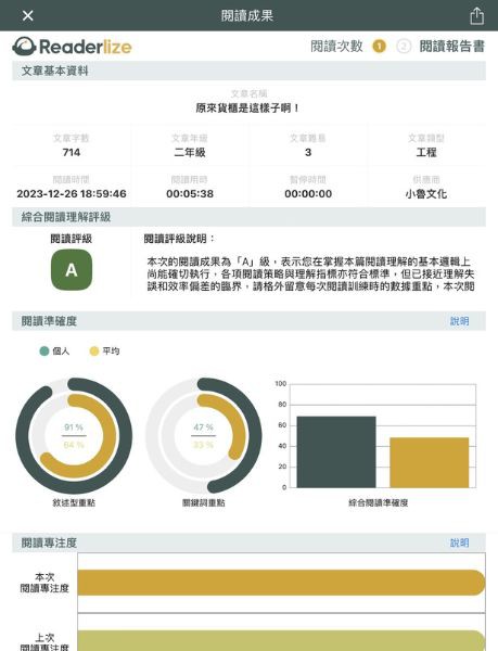 Readerlize 閱讀救星 中文閱讀理解軌跡訓練評測系統-帳號授權-跨領域理解力特訓方案