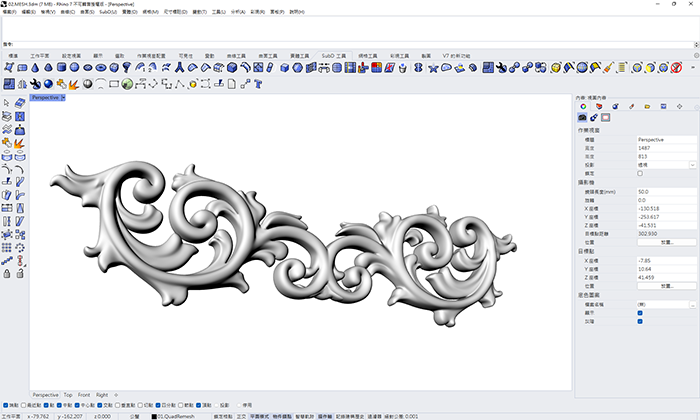 工的實體並在必要時可轉換為NURBS。延伸的QuadRemesh 功能可將現有的曲面、實體、網格或