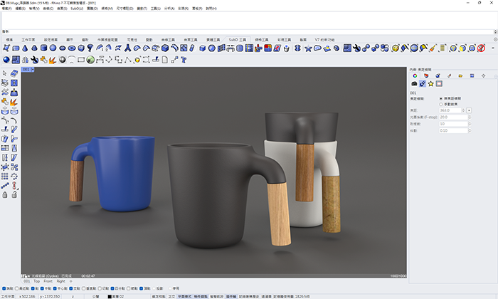強大的即時彩現工具 Cycles,利用內建材質庫與環境光照可以建立擬真彩現效果圖,於Rhino 7 新