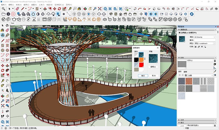 SketchUp是一套最直覺易上手的3D建模軟體,其靈活簡單的繪圖方式,深受建築、室內設計、景觀、木工、遊戲空間設計、3D列印等產業的喜愛。除了直覺易用的3D建模功能之外,亦內建眾多實用工具與程式,包含豐富且免費的專業3D模型庫、從3D模式到2D專業圖紙的LayOut程式,並有支援60多種軟體資料格式的Trimble Connect雲端儲存空間可進行協作及分享。LayOut程式,完全與3D模型連動,可取代傳統的2D施工圖繪製。