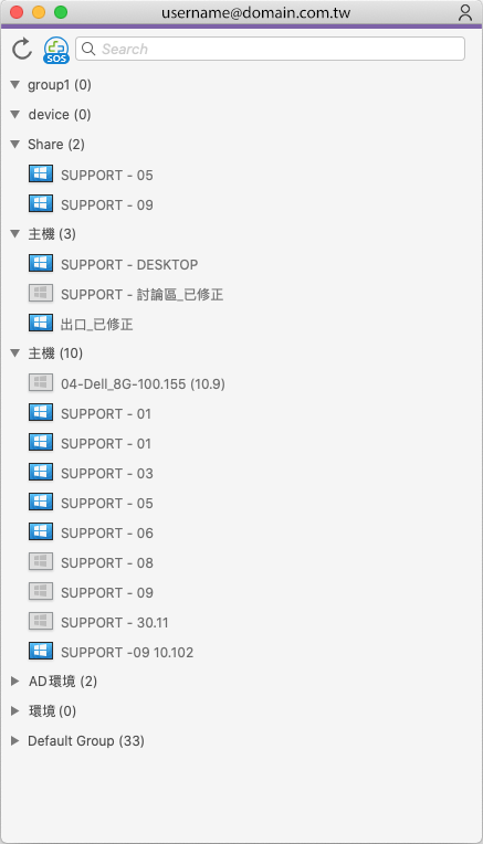 ■ 兩個同組使用者可同時遠端進入同一個電腦 (需要 2個licenses)。