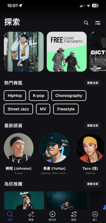 swipe師資陣容強大,不僅有臺灣知名舞蹈老師,更有國外大咖齊聚一堂線上開課。