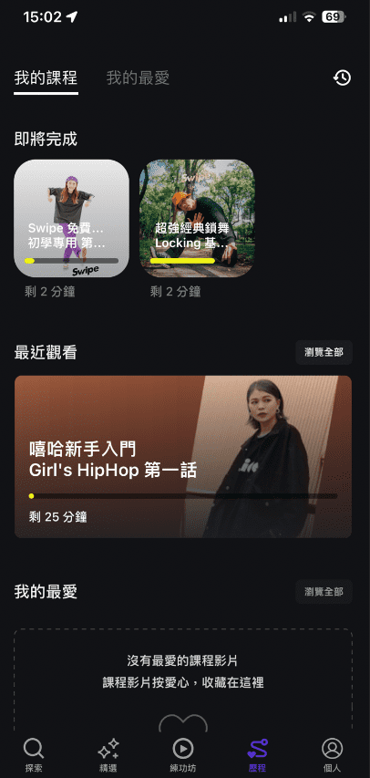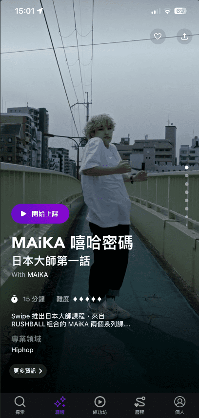 swipe讓你不在因為外面下雨不想出門又想練舞的窘境,隨時隨地打開手機就能練習。
