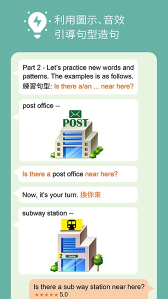 提供多種情境中常用的表達語,以Echo Method「回音法」做聽說訓練。各種年齡的使用者都適用。