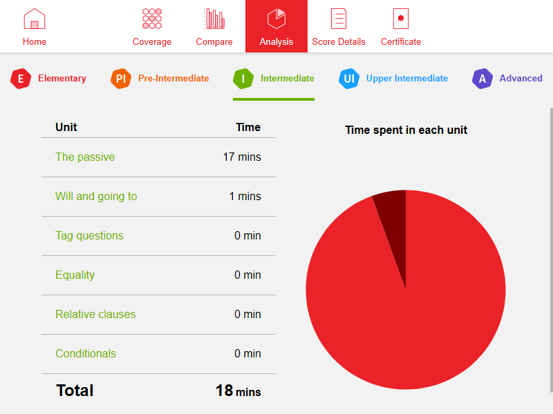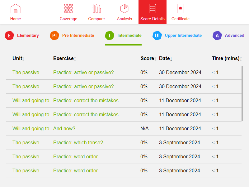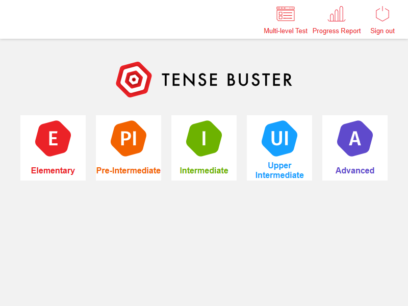 1. Tense Buster 共分成 5 個級數,從初級( Elementary )至高級( Advanced ),教材內容設計程度從 CEFR A2 ~ C1 level 。