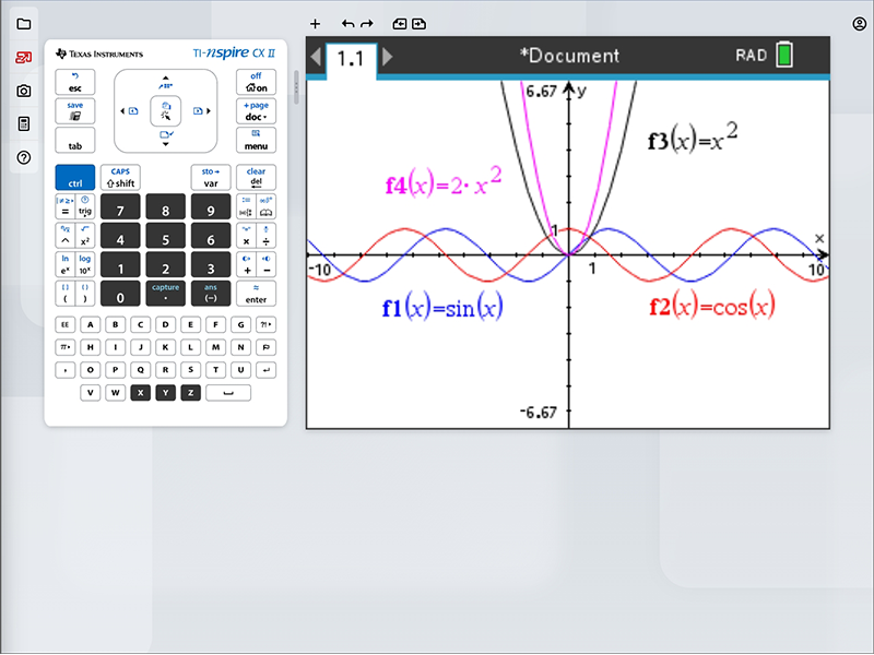 *操作相關屬性的鏈接表示,即時更新其他表示,並顯示有意義的關聯,無需切換螢幕(例如,拖動圖形函數以查看相應方程式和數據列表的影響)