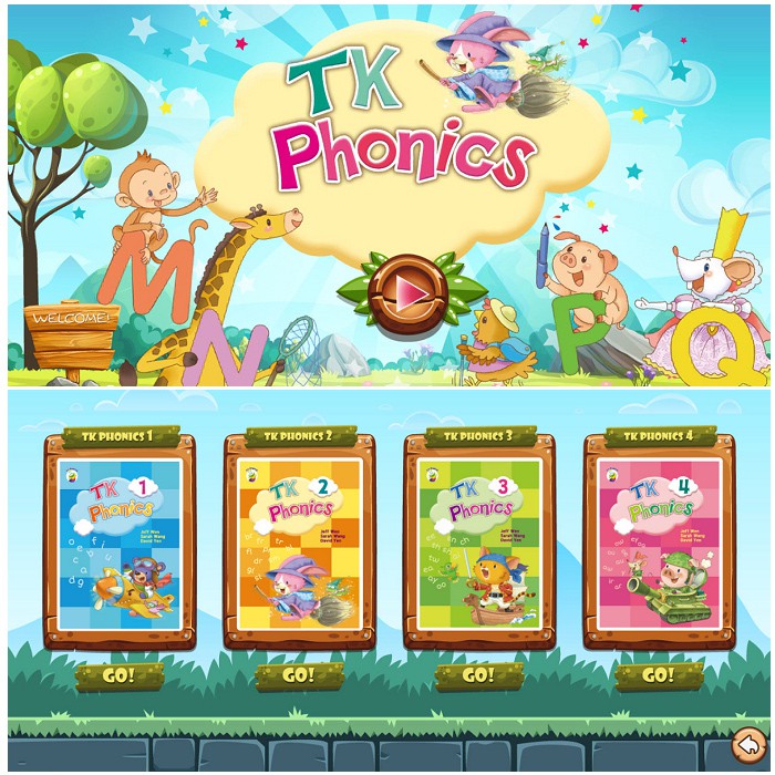 1. 雲端電子課件及移動式電子課件解密鎖,可學習TK Phonics所有冊別內容,老師可按照各班級程度選擇不同冊別課程。