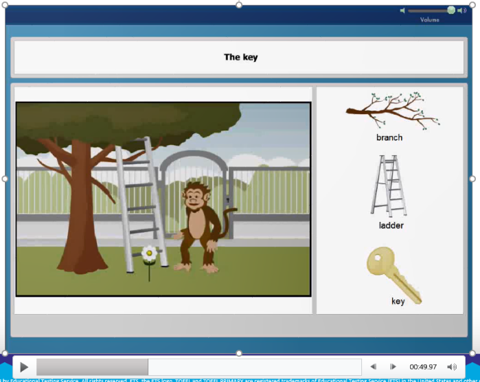 *TOEFL Primary口說測驗由ETS官方測驗為以有基礎口語程度學生所設計,著重生活題型回答、應對和生活所需溝通,也包含些許看圖說故事題型,提供學生練習口語表達能力。
