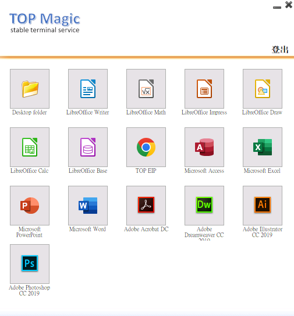 TOP Magic虛擬桌面平臺是一套性價比最高的AOD (Application On Demand) 隨選應用程式系統。提供師生「隨時、隨地、隨需」使用,具有「免下載、免安裝、免設定、免更新」的特色,學生不需花費心思在軟體安裝和電腦環境設定,就可有效率地進行研究與學習。