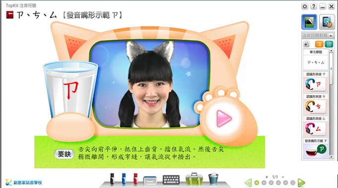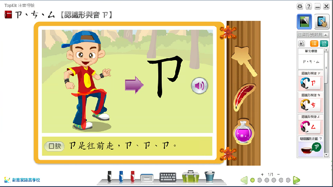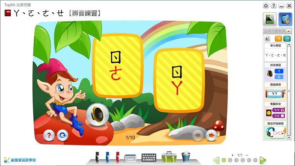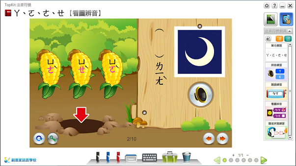 2.數位化教具分為「教學」與「互動」模組,老師可依須求挑選單元配合現有注音教材使用。