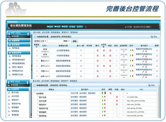 每一間會議室都配置有獨立的檔案櫃,非會議與會者不能讀取,確保重要資料不外流。