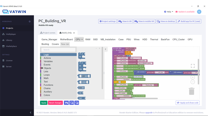 2. Blockly邏輯編輯器– 不需程式技能,藉由程式積木為您構築場景邏輯,創作互動內容。