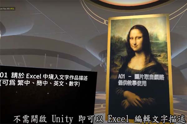 • 不需開啟Unity,可直接錄製每幅畫作的中英文語音解說檔,並以展示程式直接更新VR體驗。
