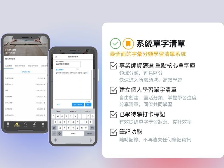 紀錄個人學習軌跡 (單字/字首字根字尾/聯想/清單/單字填空題)
